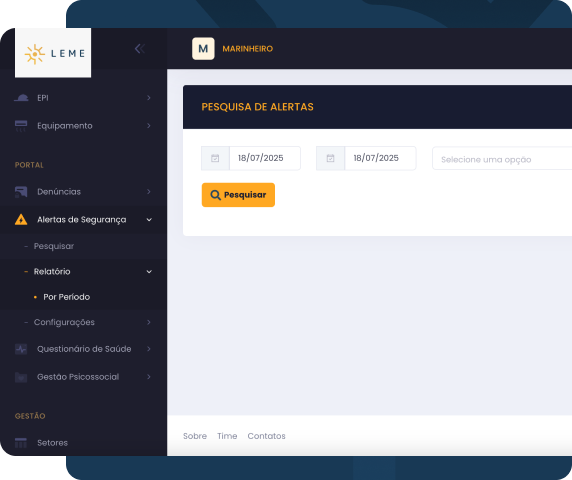 Especialistas em Segurança do Trabalho Diogenes Ferreira – DIRETOR COMERCIAL O Leme revolucionou nossa gestão de EPIs e fardamentos, trazendo mais organização, segurança e eficiência. Além de otimizar nossos processos internos, o sistema garante que nossos clientes também sejam beneficiados, recebendo um atendimento mais ágil, transparente e confiável.