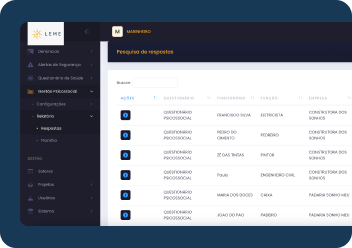 Mapeie o bem-estar dos colaboradores, identifique riscos psicossociais e acompanhe indicadores de saúde ocupacional em tempo real.